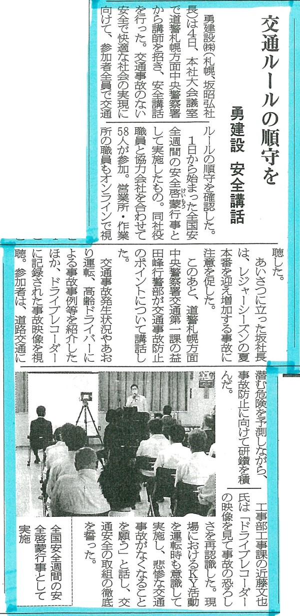 講師は、札幌方面中央警察署 交通第一課長 北海道警部 益田峰行様に講話をしていただきました。
